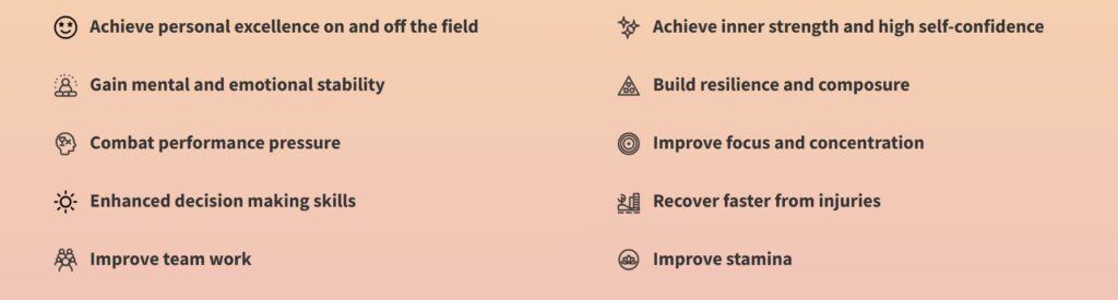 The program combines personal development processes, advanced sports psychology techniques and powerful breathing tools that inspire sportspersons to excel, both on and off the field.